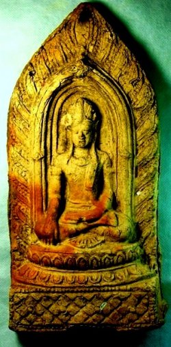 พระทวารวดีซุ้มไข่ปลาฐานบัว เนื้อดิน กรุวัดกู่เหล็ก ลำพูน